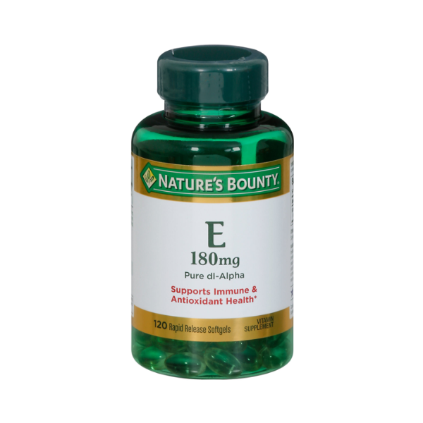 • Nature’s Bounty® Vitamin E Pure dl-Alpha 180mg (400 IU), 120 Softgels: