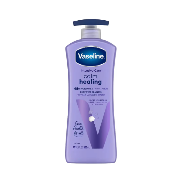 Vaseline Intensive Care Calm Healing Lotion helps heal and restore dry skin. This dermatologist-tested, fast-absorbing lotion will help skin looking healthy, while promoting a relaxing moment.